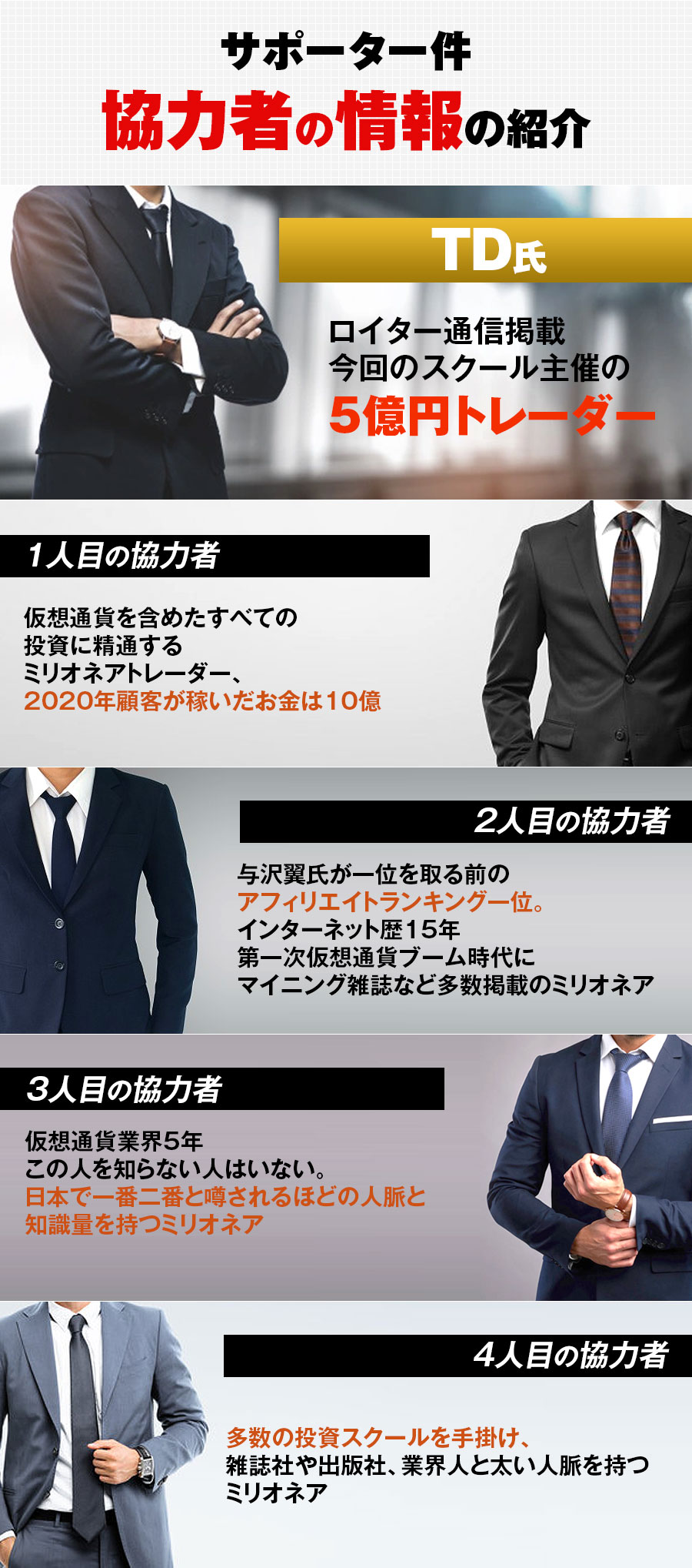 簡単に言うと儲かる案件とやり方を教えて、今後自分ひとりでも情報を収集してやっていける様にしますよ